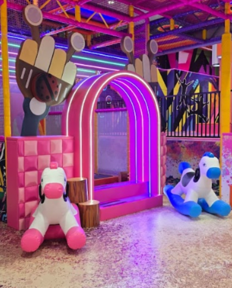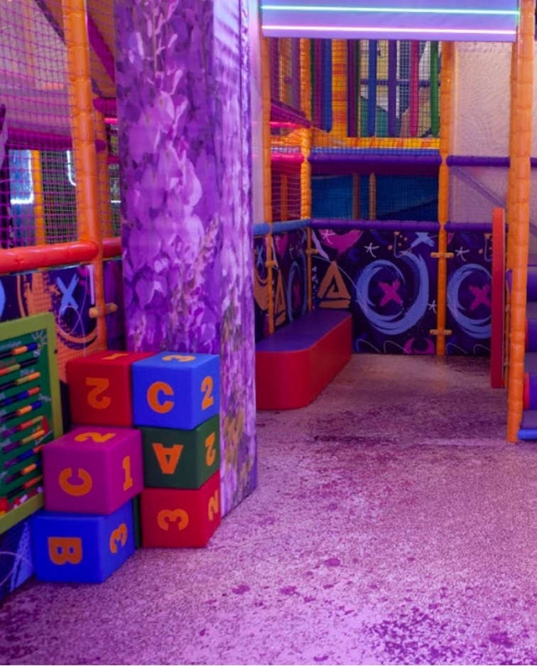 In addition to physical play, toddlers can explore interactive activity panels that spark curiosity and support early learning through touch, movement, and discovery. Soft foam blocks are also available, allowing children to stack, build, and engage in creative play. The entire section is enclosed for added security and designed with soft materials and vibrant colors to keep your little ones engaged. Whether your toddler is climbing, bouncing, or exploring, Playtopia’s Toddler Area offers a fun and enriching playtime experience in a safe indoor environment.
